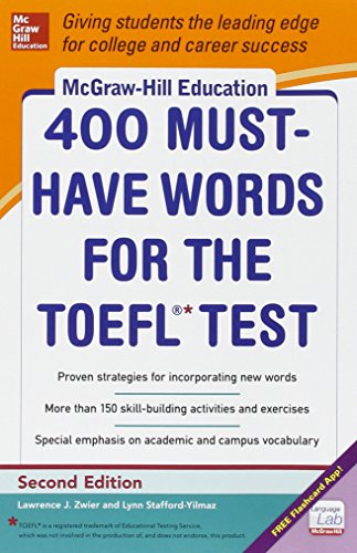 We've put all of our proven expertise into McGraw-Hill Education: 400 Must-Have Words for the TOEFL, 2nd Edition, to make sure you're fully prepared for this difficult exam. With this updated and expanded guide, you'll get essential skill-building techniques and strategies created by leading ESL educators. You'll also get 410 commonly tested words, more than 150 activities and exercises, and a free Language Lab app to help you study. With McGraw-Hill Education: 400 Must-Have Words for the TOEFL, we'll guide you step by step through the essential vocabulary--and give you the tools you need to improve your score on the TOEFL.